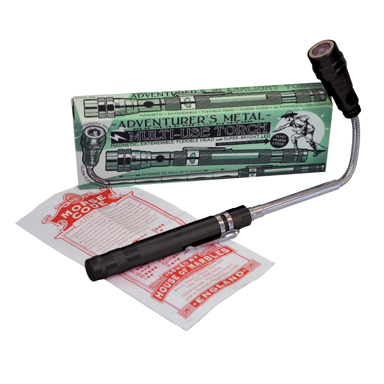 This Multi-Use Flashlight Torch is perfect for retrieving lost items from dark and hard-to-reach places. With its magnetic and extendable features, you can easily find keys, coins, screws, and more. The ultra-bright rugged metal flashlight torch ensures that you can see clearly in low-light conditions. It comes with a special Morse Code crib sheet, making it a great tool for emergency situations. You can also hang it anywhere, whether in your tent, on your belt, or on a tree. This flashlight torch is a versatile and handy tool to have for any outdoor activity or emergency situation.