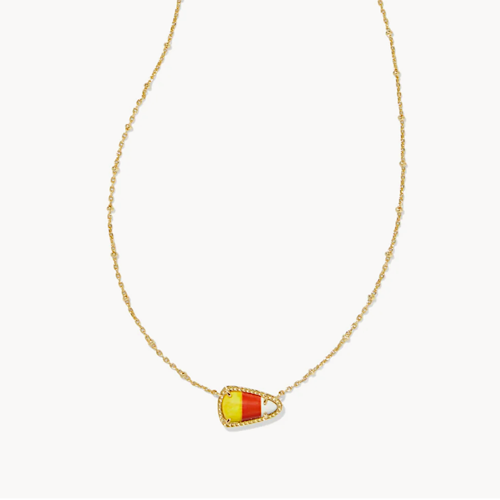 Kendra Scott: Candy Corn Short Pendant Gold Necklace in Candy Corn Magnesite