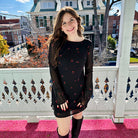 This fitted crepe mini features a bold floral print for a modern, standout look. With long sleeves and a short hemline, it brings the perfect contrast of coverage and allure for nights out.