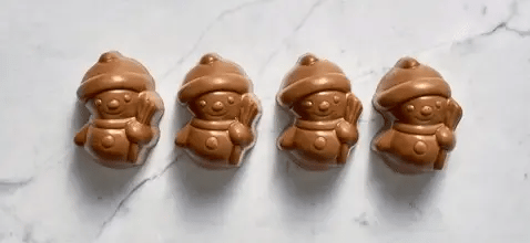 One of our MOST popular holiday confections. Our miniature milk chocolate snowmen are filled with our signature soft buttery caramel, made from cane sugar, Fresh whipping cream, butter, and Madagascar Vanilla; slowly cooked in copper kettles.
