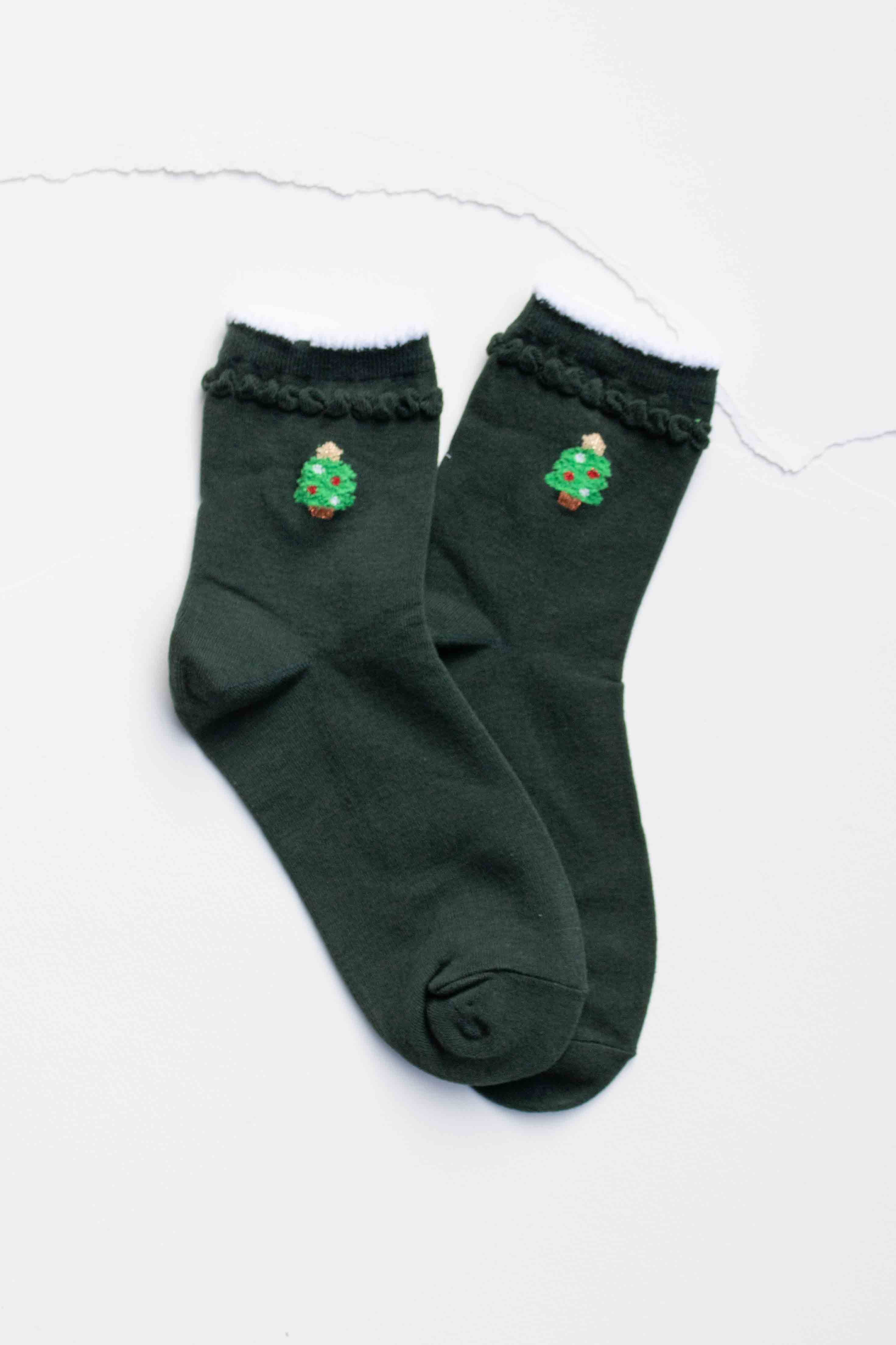 Get into the holiday spirit with these ultra-cozy embroidered crew socks. Each pair features a soft white fuzzy cuff, delicate scalloped trim, and a playful holiday icon for a subtle but festive touch. Perfect for gifting, winter outfits, and cozy season stocking stuffers. Soft, comfortable everyday fit Cute mini embroidery detail (Snowman / Christmas Tree / Gingerbread) Fuzzy sherpa-style cuff for added warmth Scalloped edge for a sweet finish Ideal for holiday gifting + retail displays One size fits most (women’s)