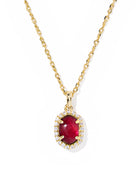 Daphne Crystal Framed Pendant Necklace Gold Dark Burgundy Illusion