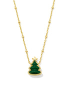 Holiday Tree Pendant Necklace Gold Green Quartzite