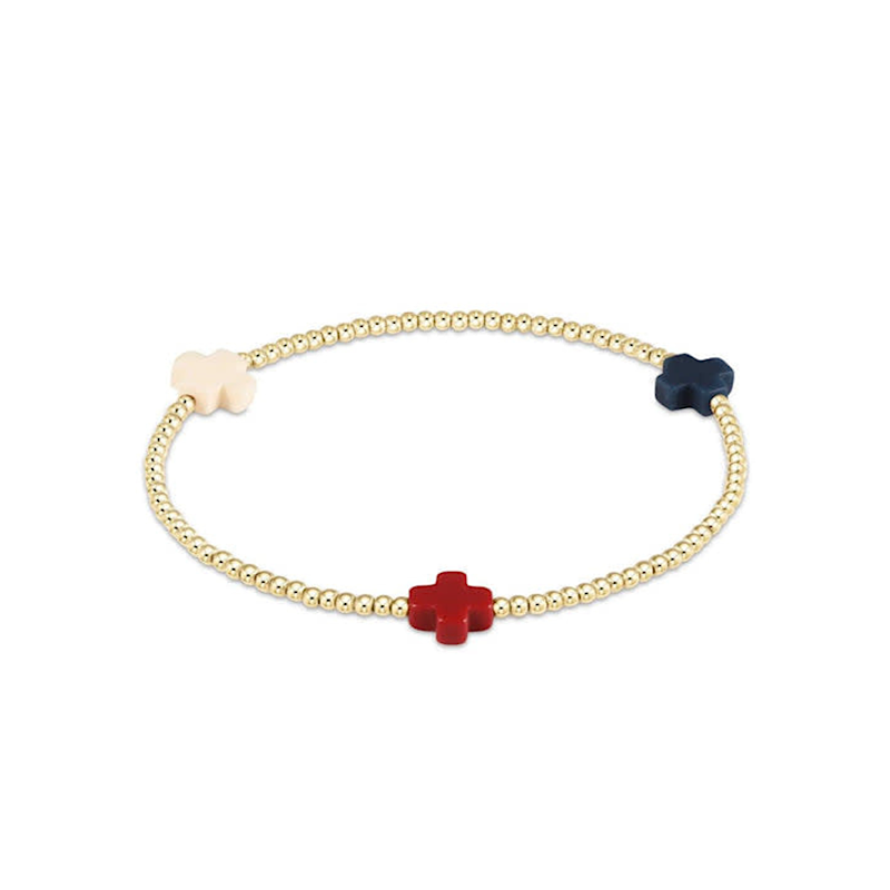 - Made with 2mm, 14kt gold-filled beads, and our signature cross in red, off-white, and navy