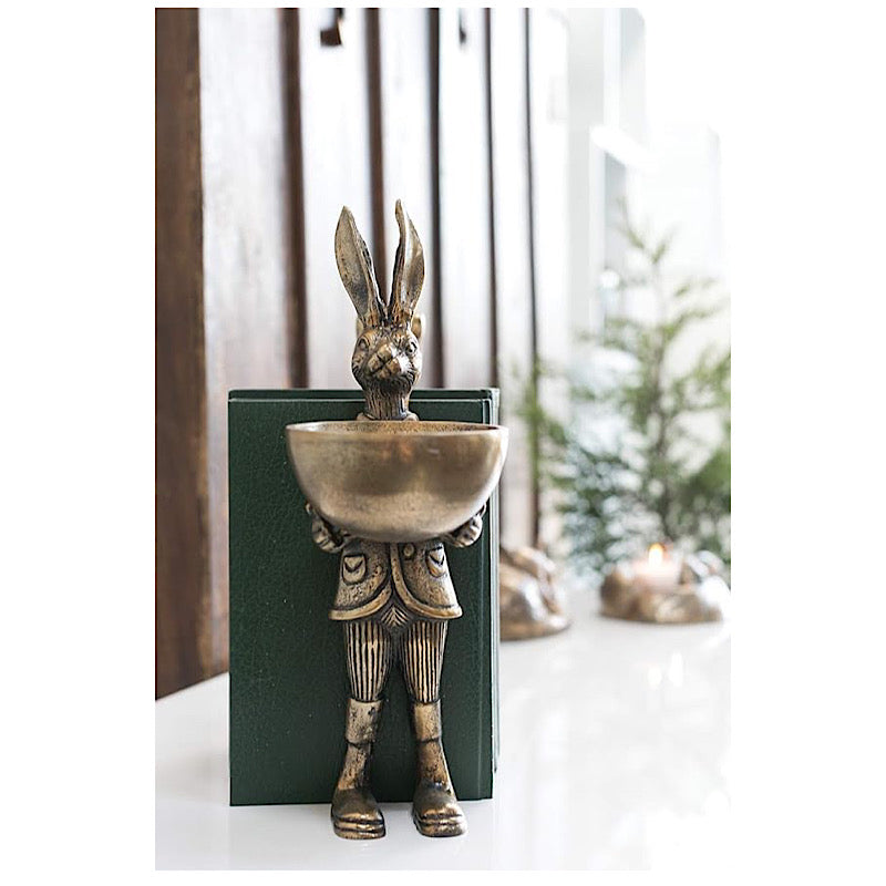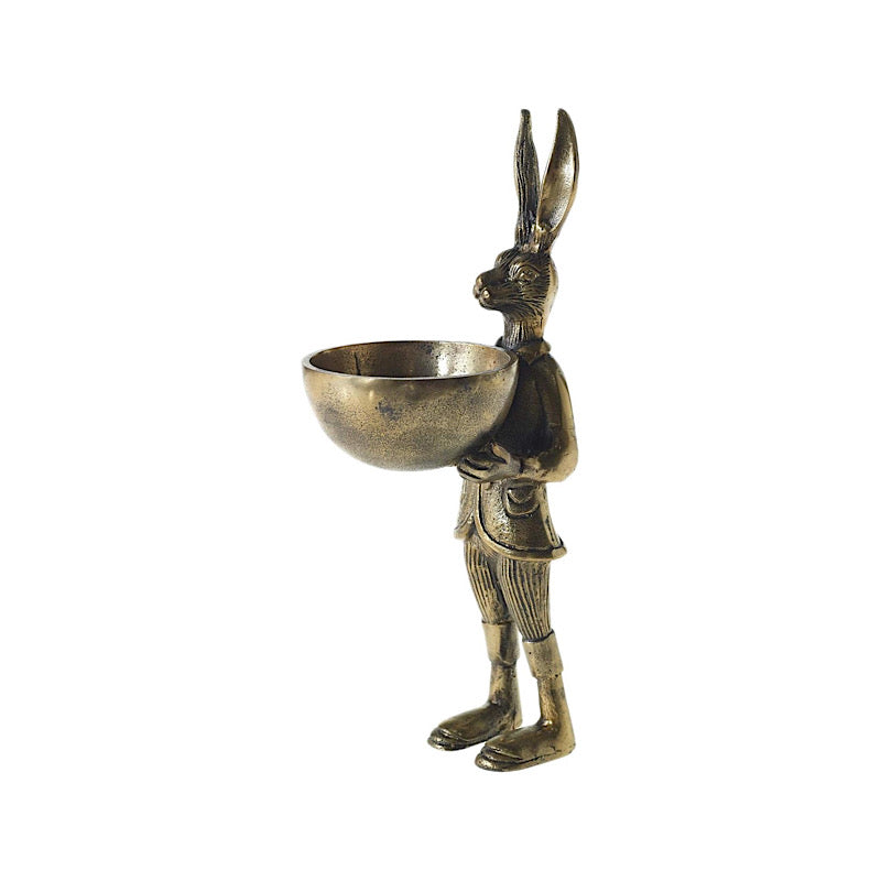 This metal stand featuring Eric the Rabbit is as practical as it is beautiful. With a beautiful brass-gold finish and a bowl for display or gifts, this piece is an instant classic with personality to spare.