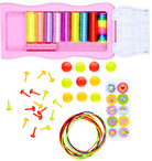 Kit includes 1 portable bracelet loom, 12 pegs, 10 bracelet threads, 10 elastic bands, 10 snaps, 10 stickers, and instruction booklet.