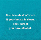The "Best Friends Don't Care If Your House Is Clean. They Care If You Have Alcohol." cocktail napkin in dark teal green and white makes this napkin a great choice for any party decor. Both men and women love this fun saying celebrating friendship! Mary Phillips cocktail napkins toss out the underlining element of fun and attitude, making yours an event they’ll not soon forget. You can also pair this little number to a bottle of wine for a most coveted hostess gift! Each pack contains 20 5 x 5 three-ply cocktail napkins *super thick* packaged in polypropylene.