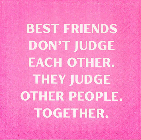 "Best friends don't judge each other. They judge other people together. ", cocktail napkin is perfect for your next girls’ night or cocktail party! This fuschia and white cocktail napkin is a fun addition to any party or luncheon! Both men and women love this fun saying! Mary Phillips cocktail napkins toss out the underlining element of fun and attitude, making yours an event they’ll not soon forget. You can also pair this little number with a bottle of wine for a most coveted hostess gift! Each pack contains 20 5 x 5 three-ply cocktail napkins *super thick* packaged in polypropylene. Stock up for your next book club or to give to the hostess!