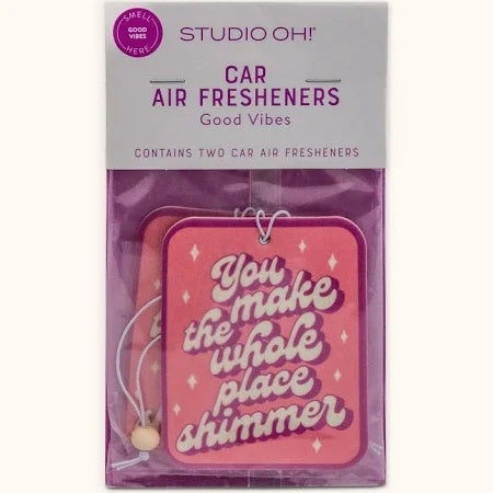 Make your drive time more pleasant with colorful car air fresheners from Studio Oh! These fragrance-infused designs help eliminate malodors and create long-lasting freshness. With two car air fresheners per package, you can mix and match designs between cars or keep a spare tucked in your glove box.