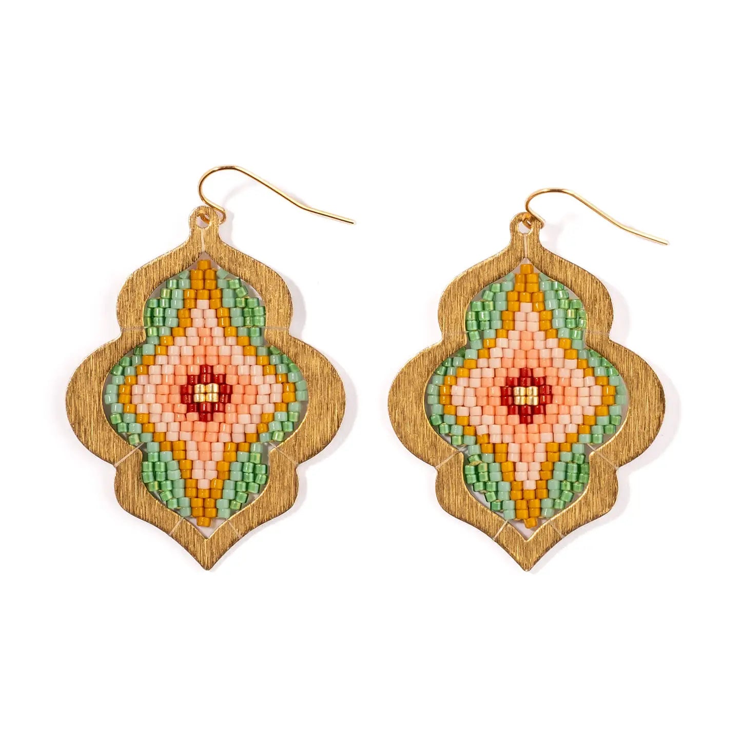 Window Drop Earrings Green/Pink