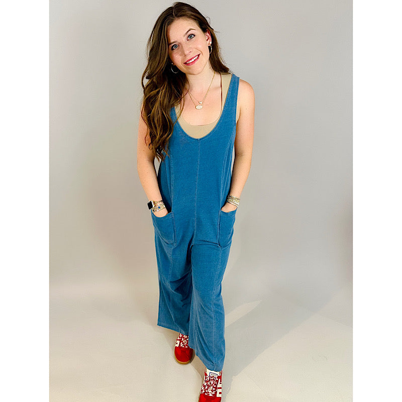 This jumpsuit has that easy, everyday vibe you love, made from soft jersey denim with a flattering straight leg. The scoop neckline, wide buttoned straps, and patch pockets give it a classic feel, while the ankle-length fit keeps it effortlessly modern.