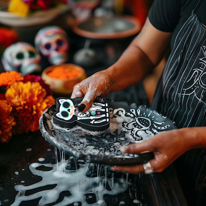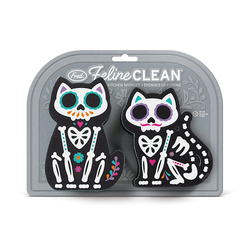 Fred’s Feline Clean sponges are your new kitchen companions! These colorful, Day of the Dead-inspired cat-shaped sponges will have you feline festive as you whisker away your chores. Each set includes two multi-layered sponges that lock in suds to give your dishes a purrfect shine.