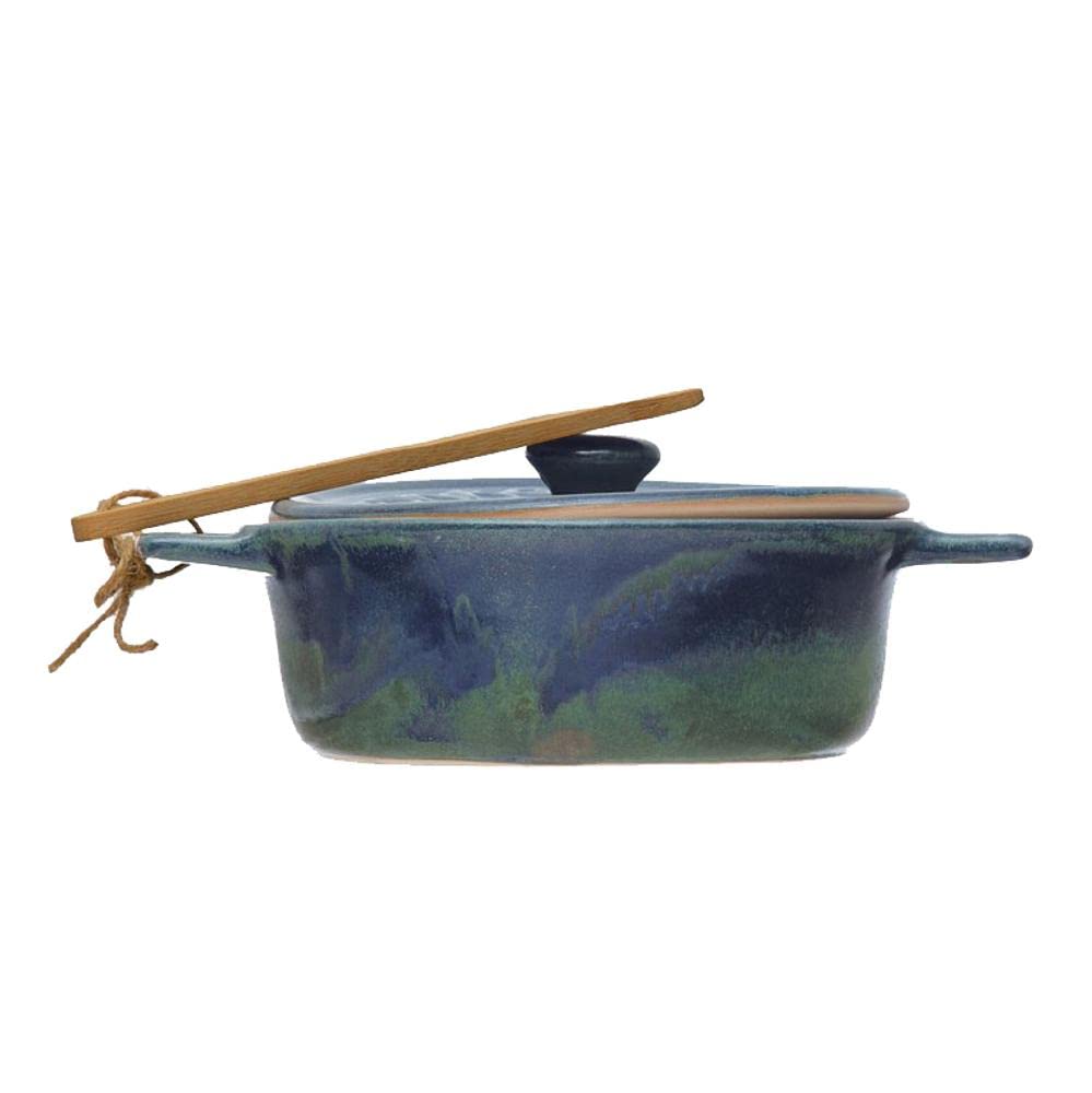 Marble & Mango Wood Pinch Pot w/ Brass Spoon