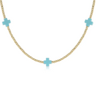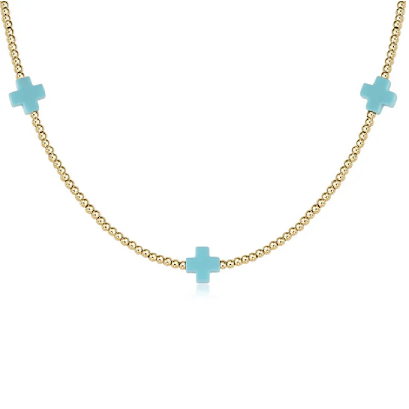 15" Choker Signature Cross Gold Pattern 2mm Bead Turquoise