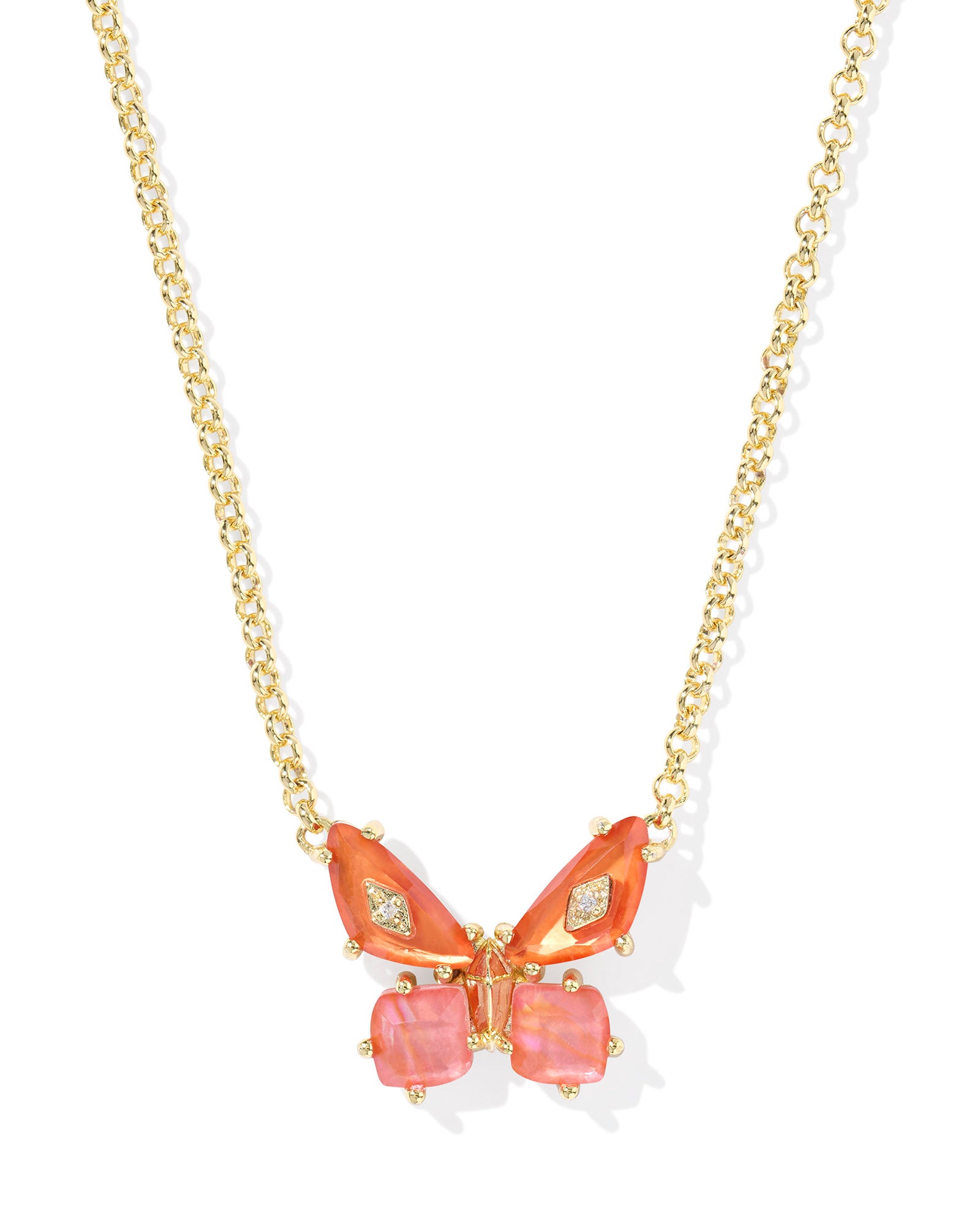 Bianca Butterfly Pendant Necklace Gold Orange Mix