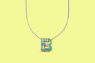 * Chain length: 16" * Chain extender length: 2.5" * Letter size: 1" tall * Colorful confetti acrylic letter charm * Colored stainless steel box chain * 18k gold plated extender