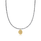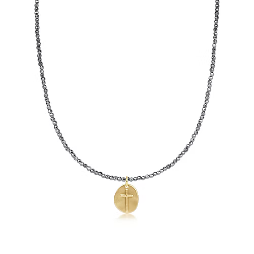 Silver Faceted Hematite Choker 2mm Inspire Gold Charm 17"