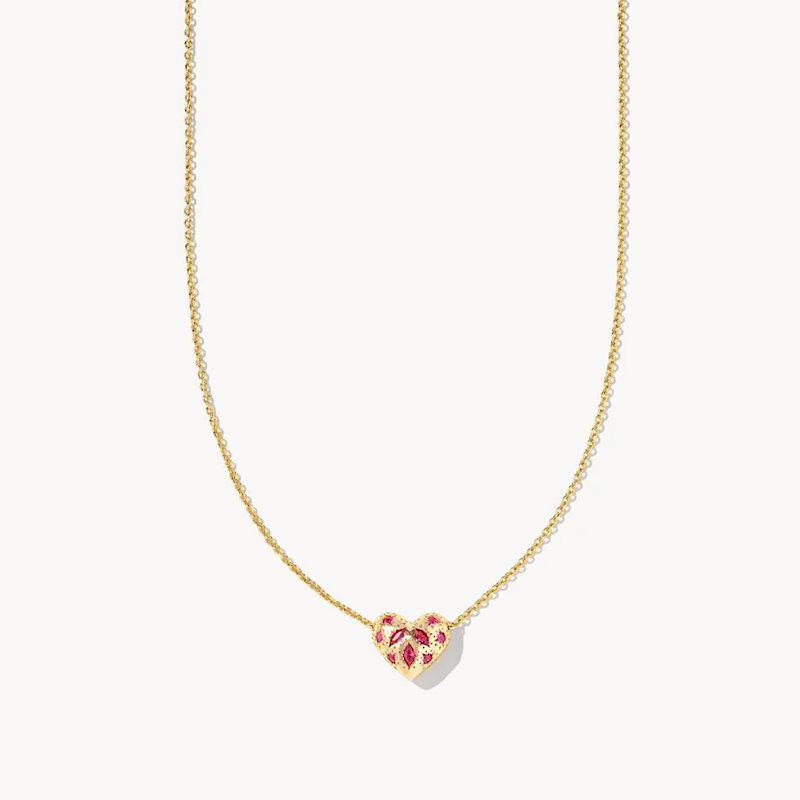 Kendra Scott: Holland Gold Heart Short Pendant Necklace in Pink Crystal