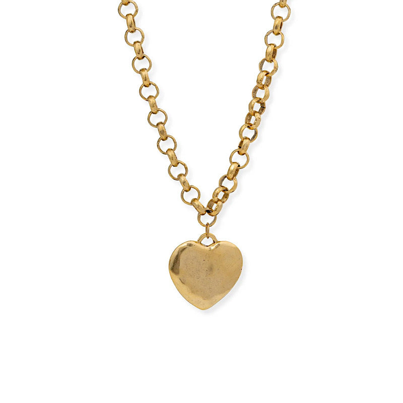 This statement-worthy Puffy Heart Necklace features a large hammered pendant on a classic rollo chain. Perfect for layering or wearing alone, it adds a touch of grand love and style to any outfit.