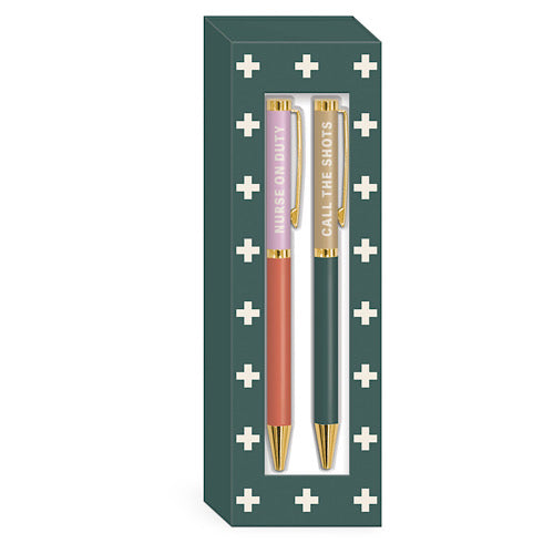 Set of two metal ballpoint pens with black ink in a gift box Pen: 5.375" Box: 2.25" x 1.125" x 7"