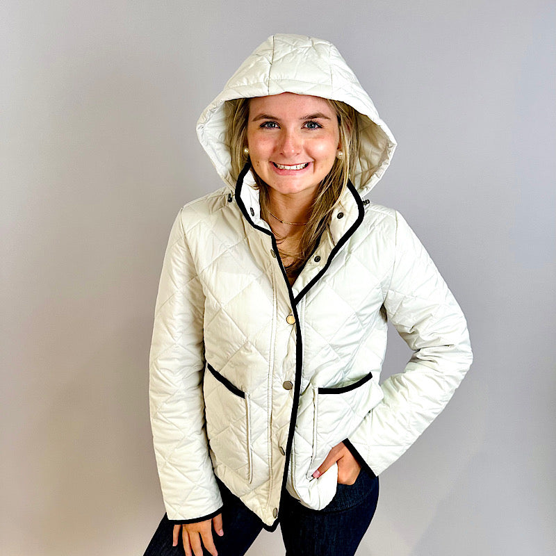 Almond Quilted Puffer Jacket w/ Removable Hood