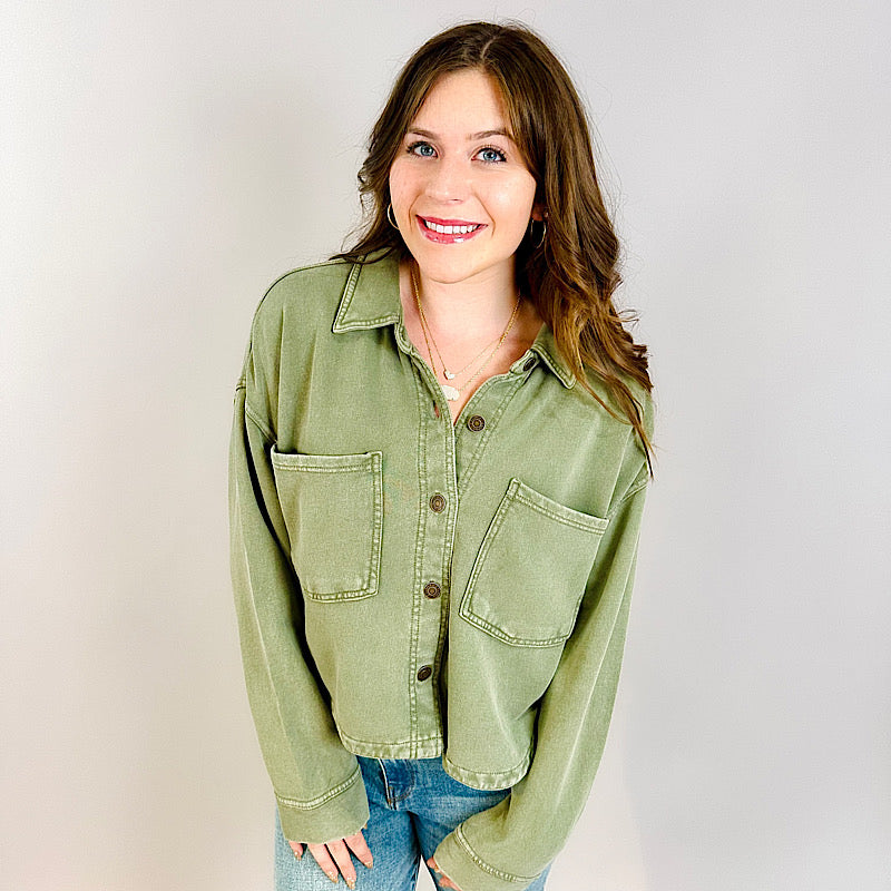 You've been loving our denim version, but let us introduce you to your new favorite knit jacket. Equally soft and comfy, this oversized button front shirt jacket can be worn open or buttoned for a versatile layer you'll want to live in.