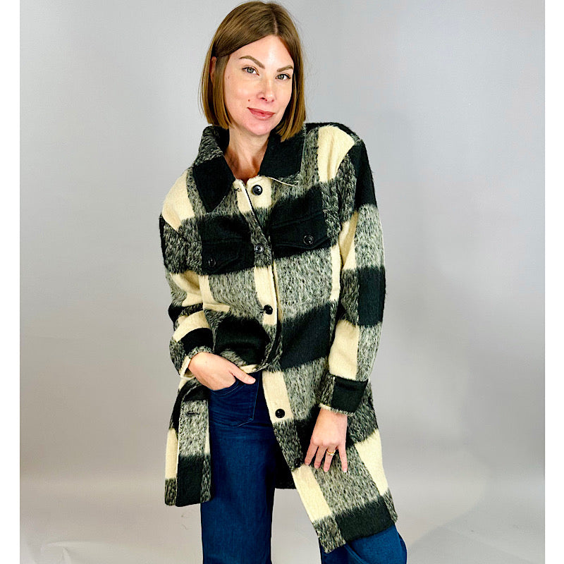 Carmine Black Cream Plaid Boucle Coat