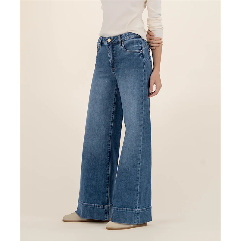 These high-rise wide leg jeans strike the perfect balance between structure and comfort. Designed in a classic medium wash with a bold wide hem, they bring an effortlessly polished feel to any look. Fab Ab pockets offer subtle shaping, while the stretchy material keeps the fit easy and flattering all day long.