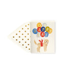 Our very own Golden pup, cute as can be, carried away with bright and colorful balloons. Gold foil touches, as always!
