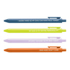 Includes 4 pens with sayings: