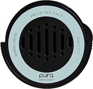 - Pura Car Diffuser Aroma: This car scent diffuser refill features fresh and floral aroma notes of fresh green apple, musk, and watery sea salt
