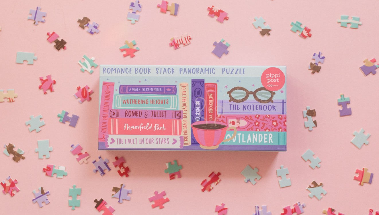 Dive into a world of romance with our Romance Novels Bookshelf 400 Piece Panoramic Jigsaw Puzzle! Featuring a charming hand-illustrated design, this puzzle showcases beloved titles including Gone with the Wind, Wuthering Heights, A Walk to Remember, Romeo & Juliet, Mansfield Park, The Fault in Our Stars, To All The Boys I've Loved Before, Bridgerton, Me Before You, The Notebook, Twilight, Outlander. Whether you're a fan of classic love stories or contemporary romances, this puzzle is sure to be a favorite. Perfect for cozy nights in, gifting to your sweetheart or bookish bestie, or simply indulging in your passion for romance novels, this puzzle promises hours of enjoyment for book lovers of all ages!