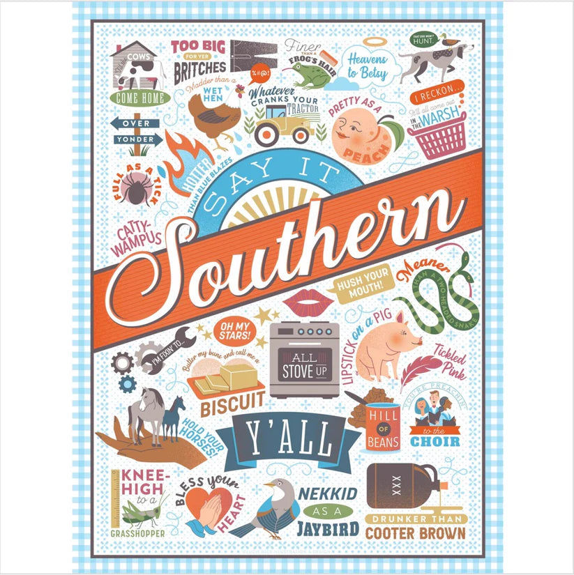 Discover the charm of Southern sayings with SAY IT SOUTHERN. This 500-piece jigsaw puzzle will take you on a linguistic journey through the South, teaching you the colorful colloquialisms and phrases unique to the region. Perfect for puzzle lovers and those looking to expand their Southern vocabulary.