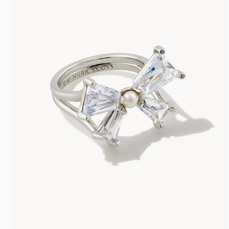 Kendra Scott: Blair Rhodium Bow Cocktail Ring in White Crystal
