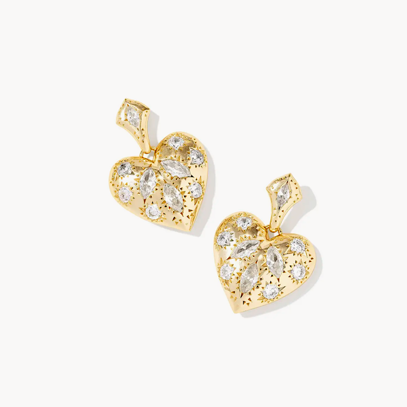 Kendra Scott: Holland Heart Drop Gold Earring in White Crystal