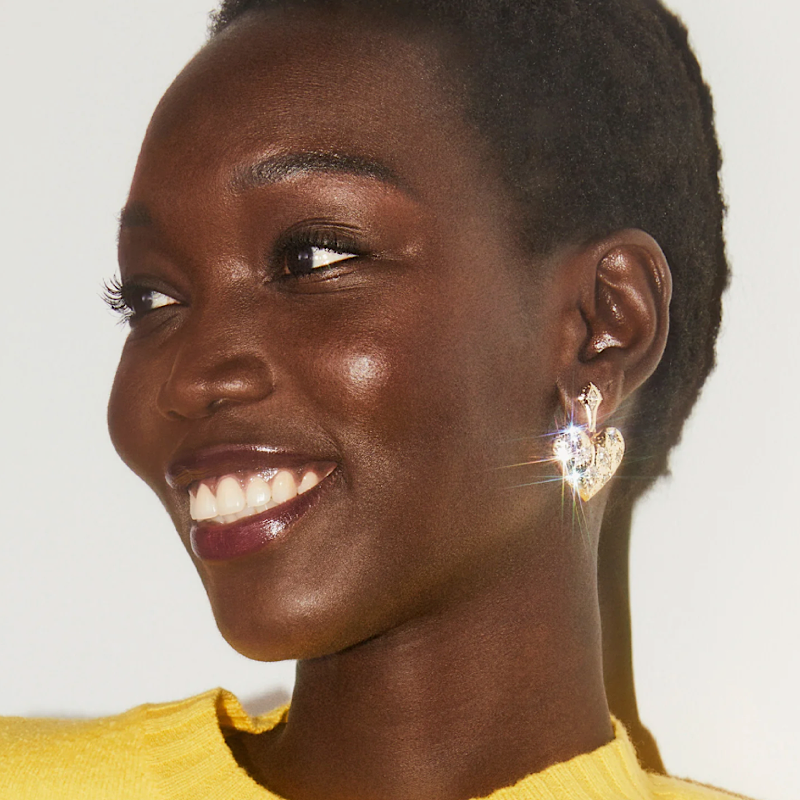 Charmingly chic, the Holland Gold Heart Drop Earrings in White Crystal are so easy to fall for. Adorned with flush-set crystals in round and marquise shapes and embellished with bright-cut decorative engravings, these sweet earrings are as radiant as they are romantic. You’ll be feeling the love (and receiving all the compliments!) with this fashion-forward style.