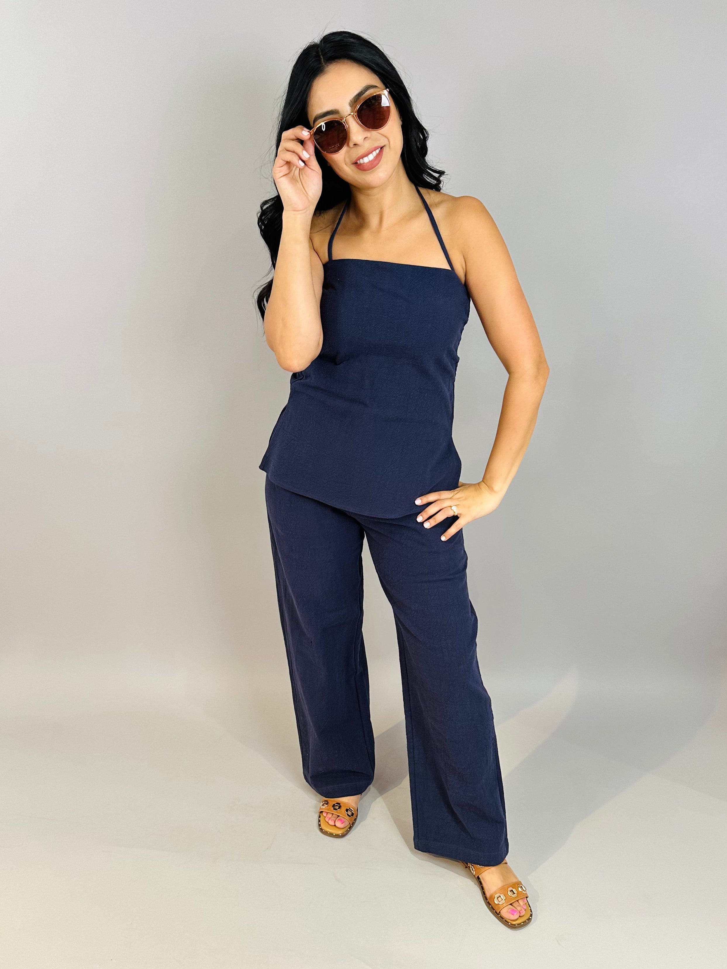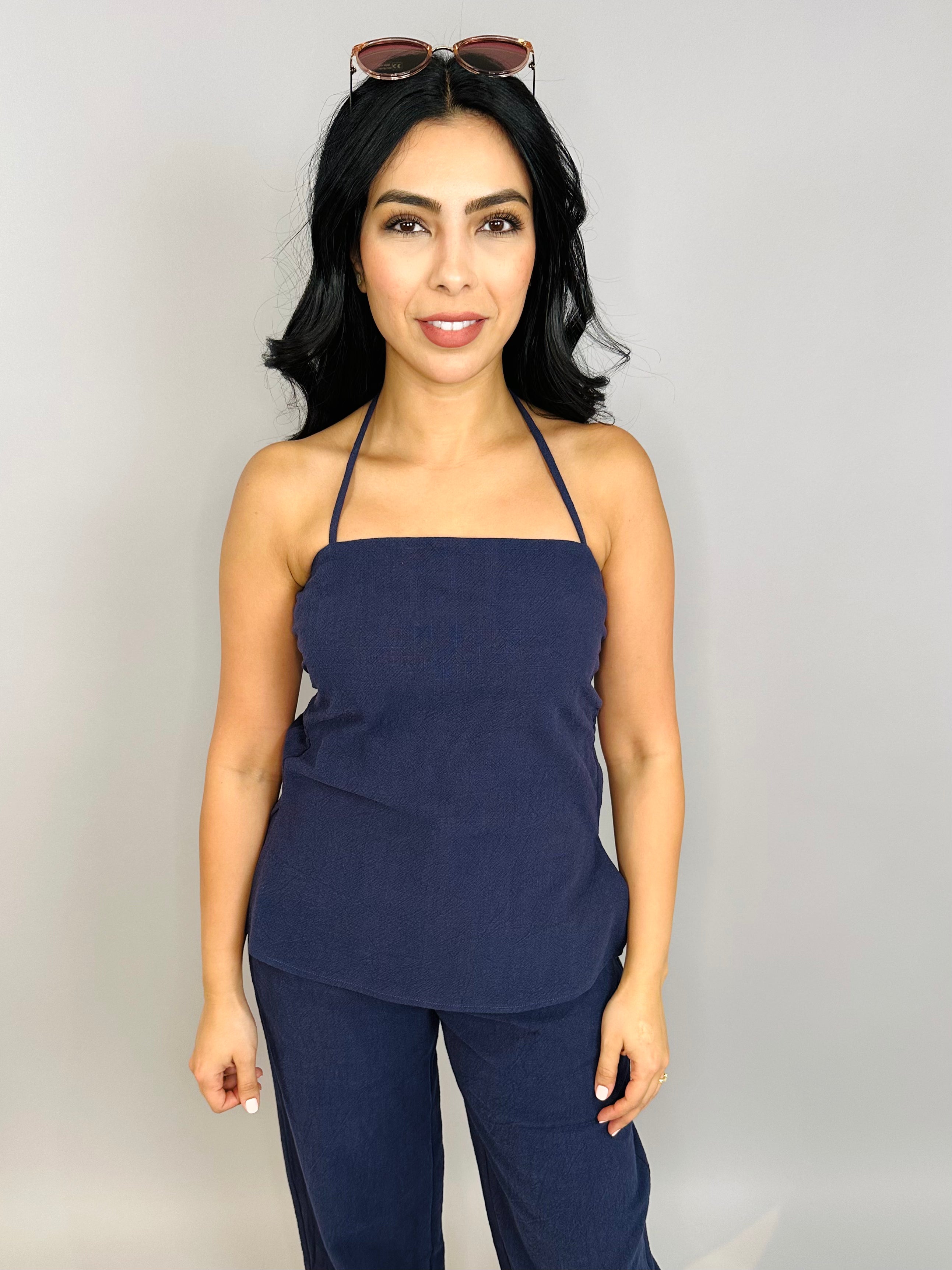 The Mira Halter Top in navy from Staple the Label is crafted with a breathable, durable and eco-friendly Ramie and Cotton blend fabrication. This halter top is ruched at the sides to flatter the waist and make you feel your best, and an elasticated back to ensure the perfect fit to your body. Wear yours with the matching Mira Wide Leg Pants by Staple the Label to complete the look.