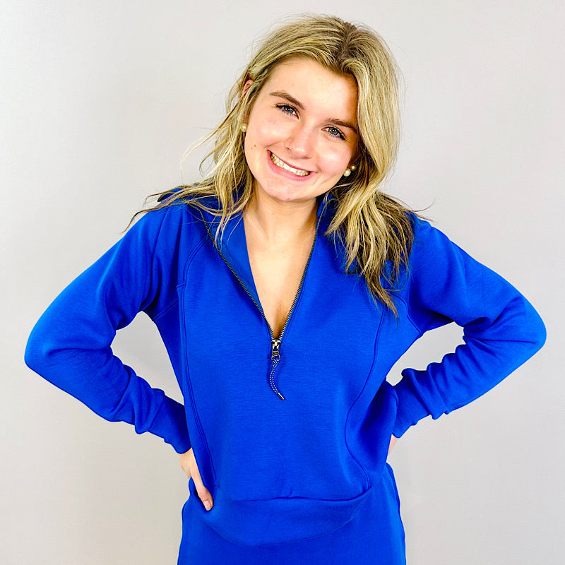 Luxurious comfort that goes anywhere, this half-zip sweatshirt by Spanx features a foldover collar, relaxed fit, and banded hem. The AirEssentials Collection is made with spacer fabric that's lightweight, soft, and ultra-drapey, designed to feel silky against your skin.