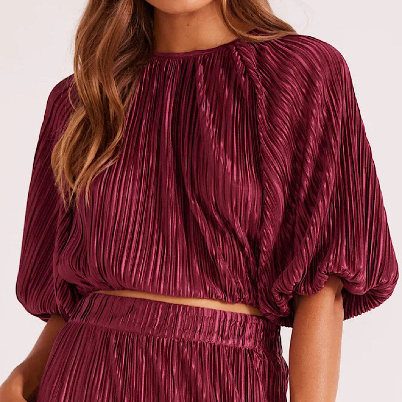 Mink Pink: Tilla Plisse Crop Top in Berry