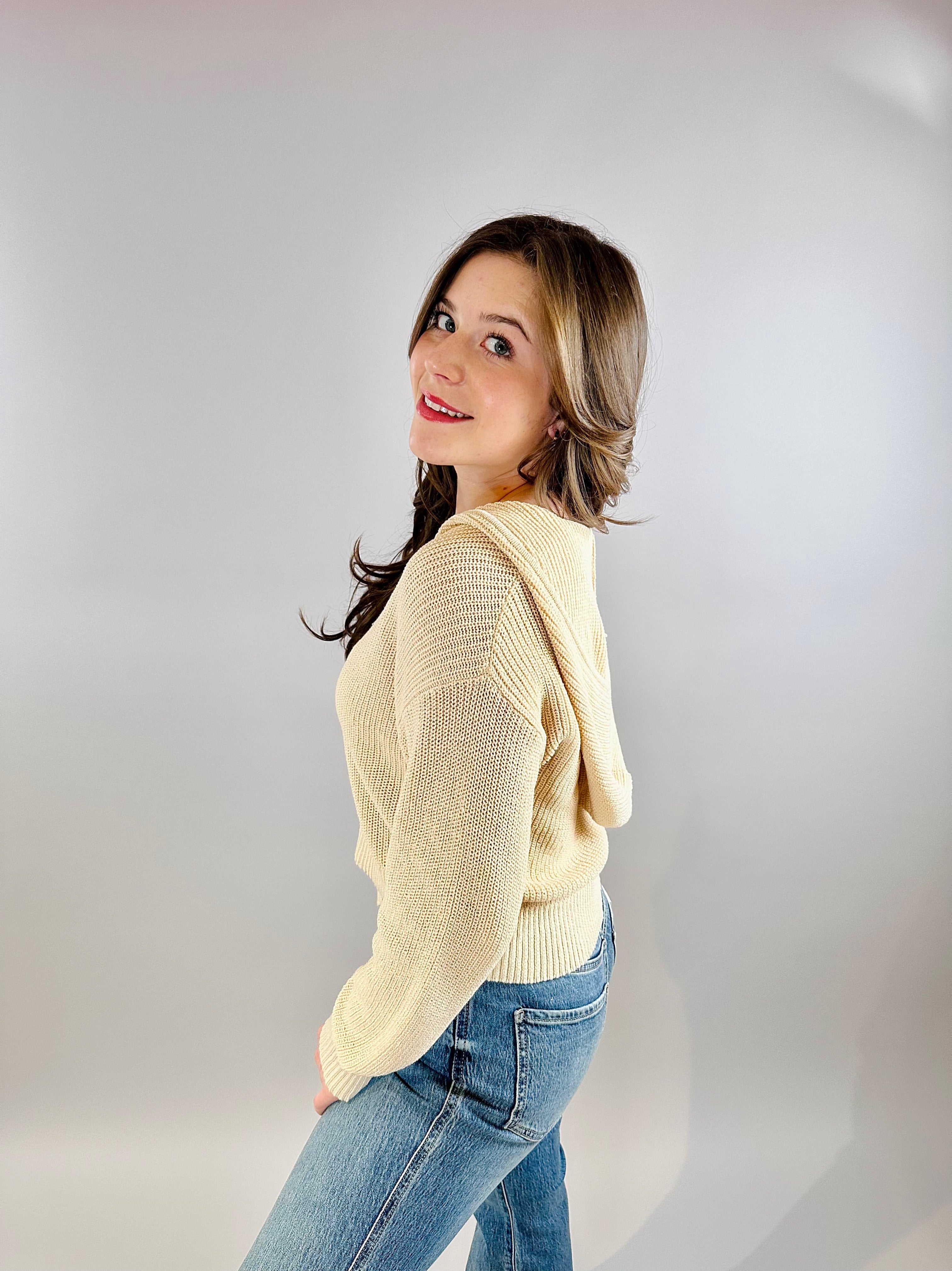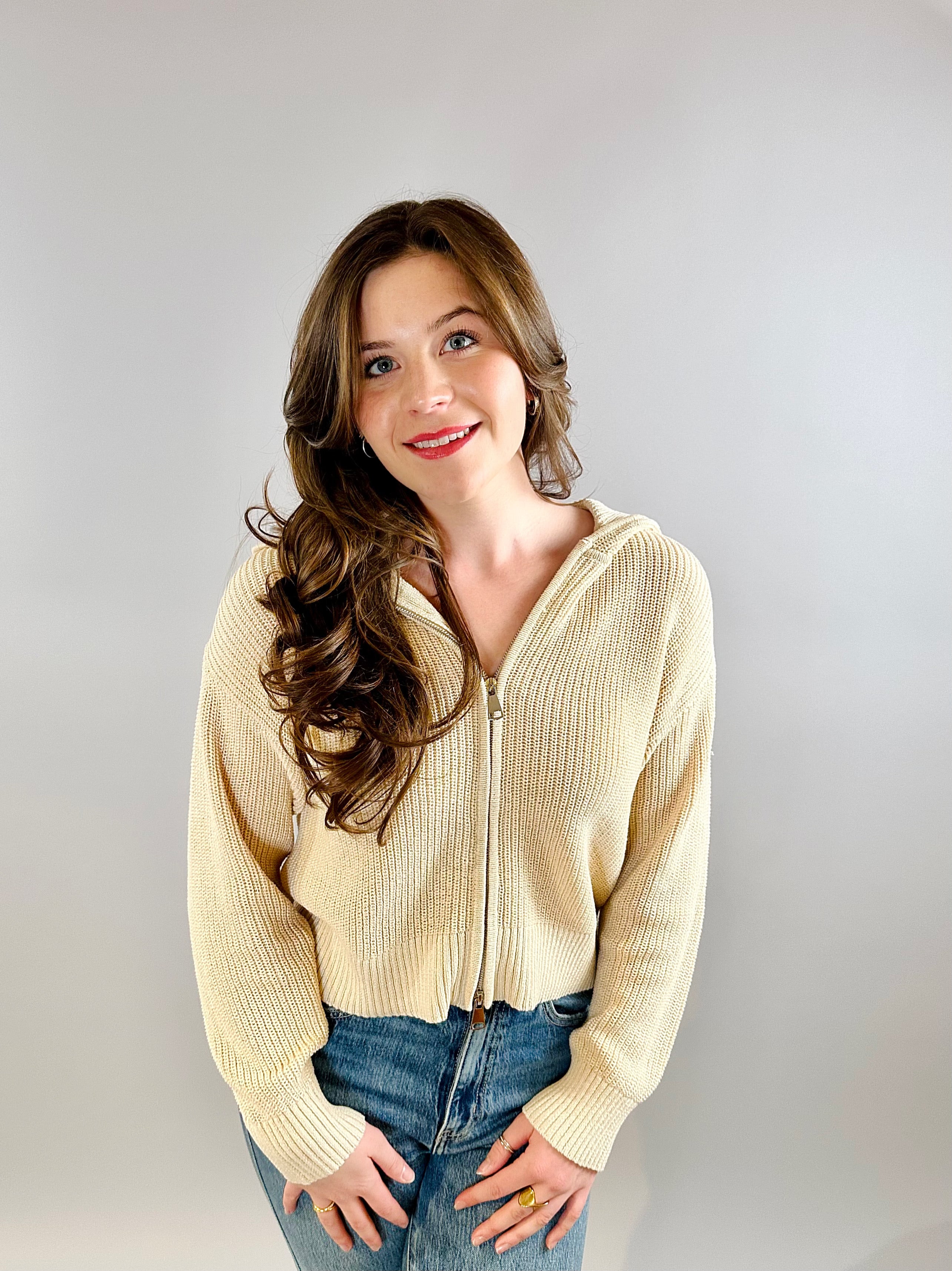 Phoebe Beige Knit Zip Hoodie
