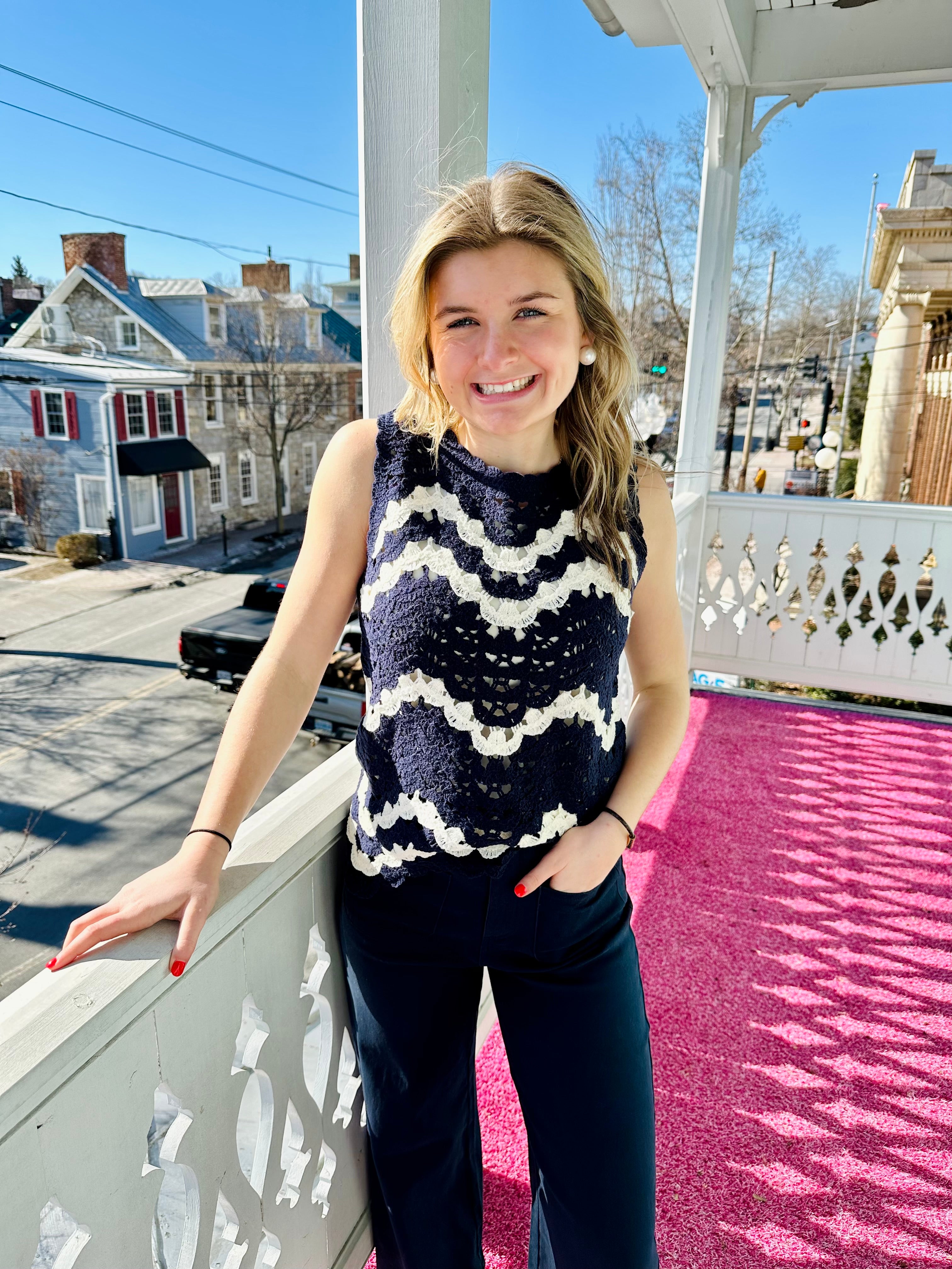 Crochet Tank Marine/White