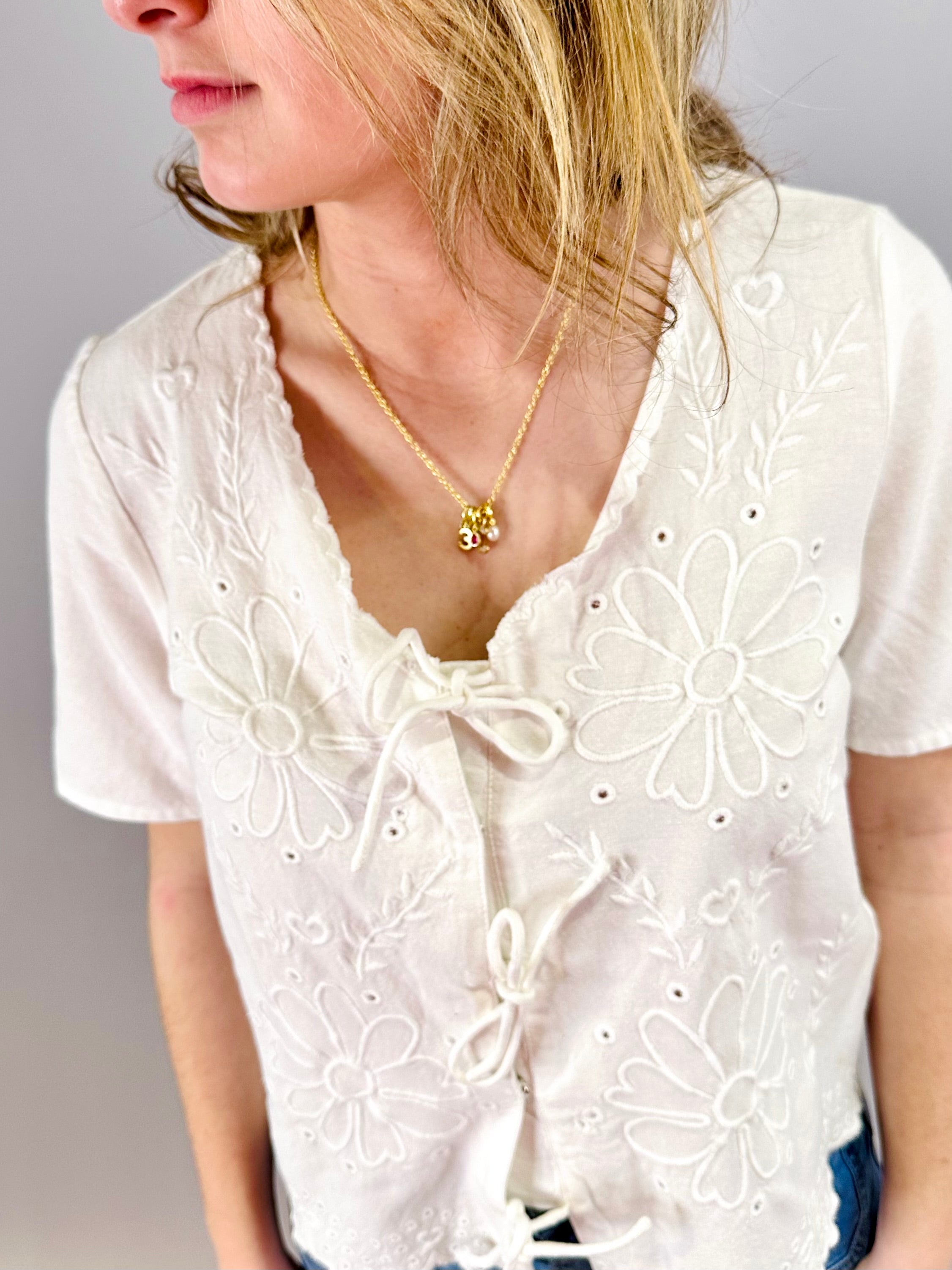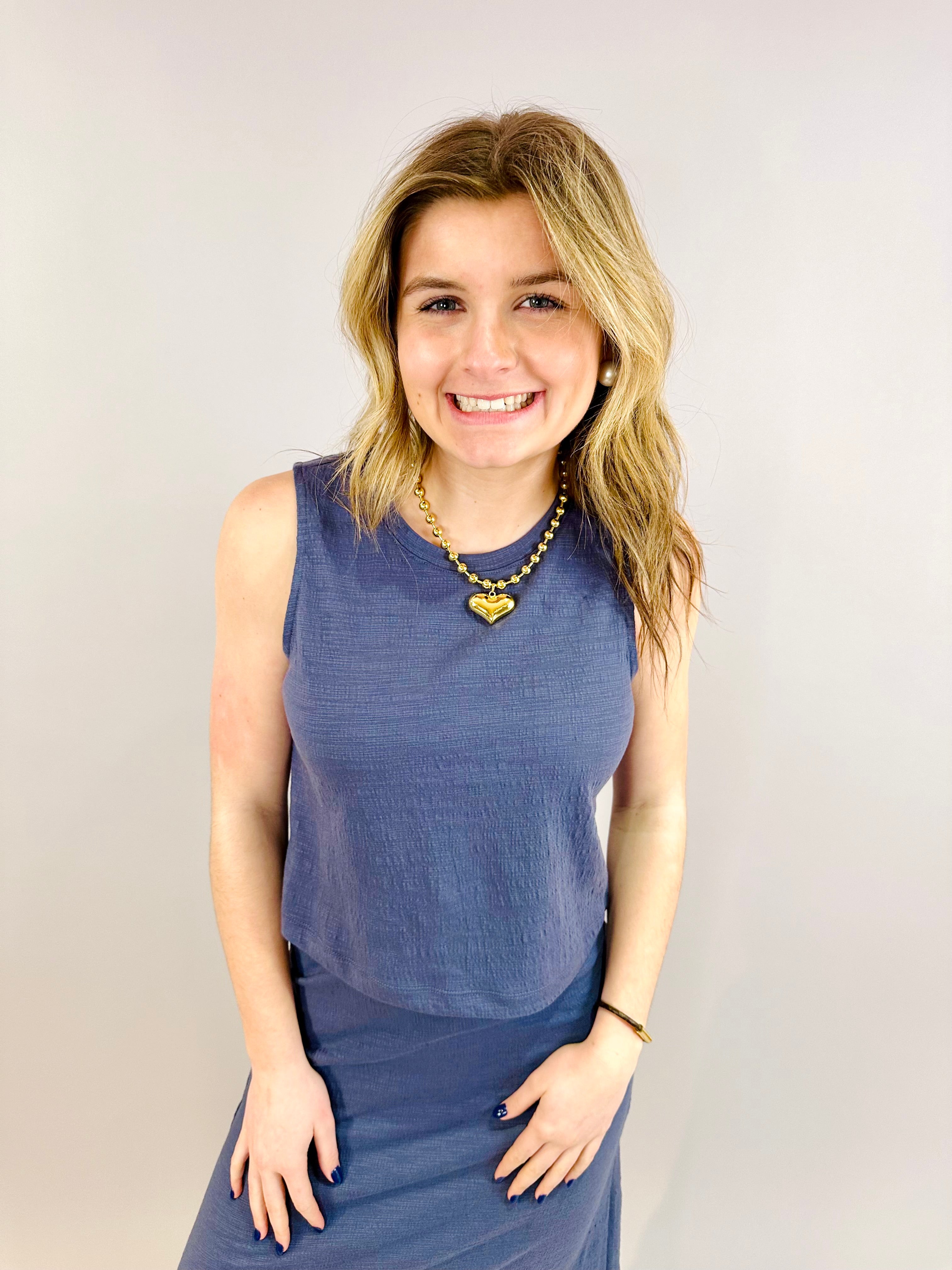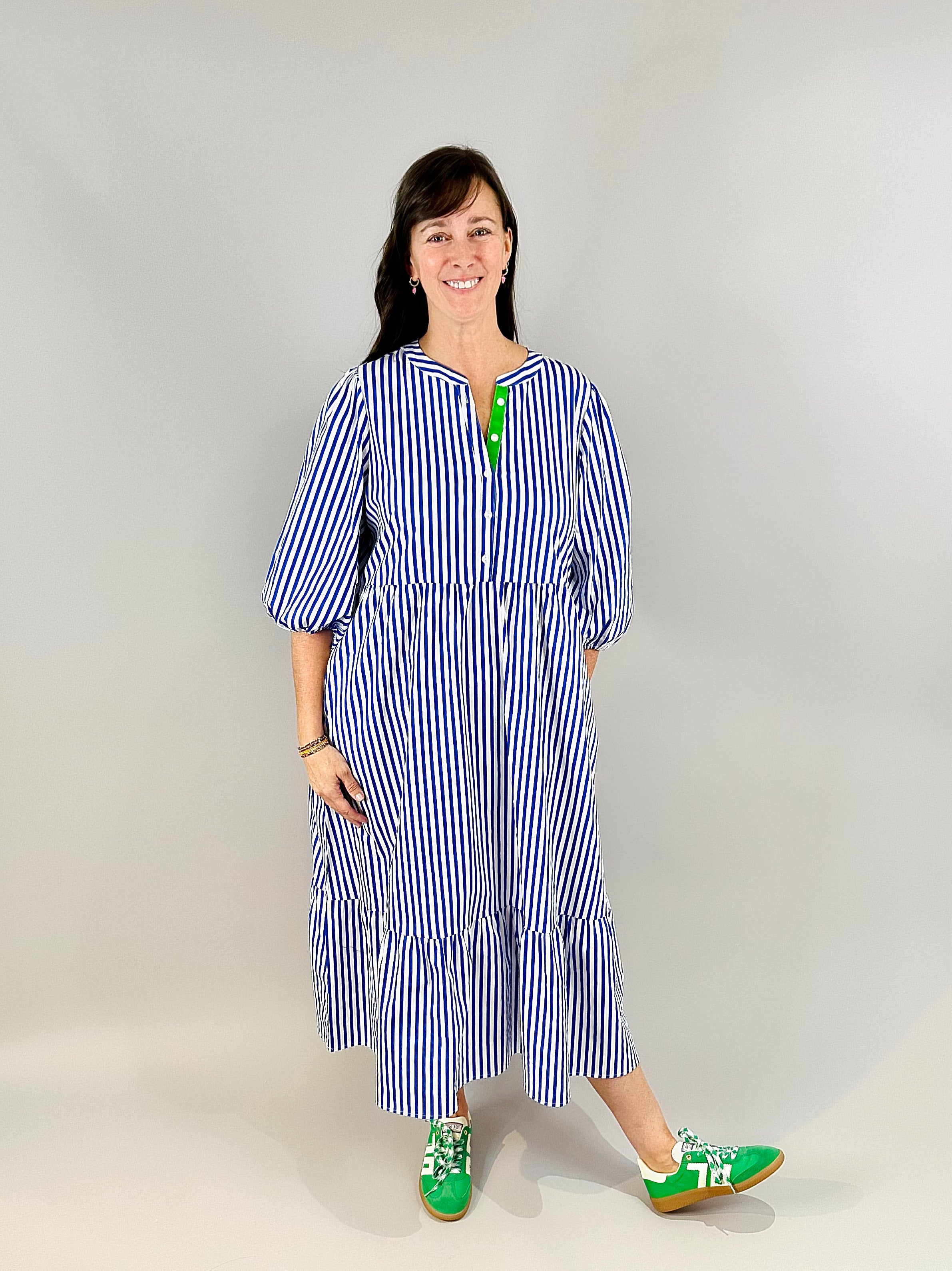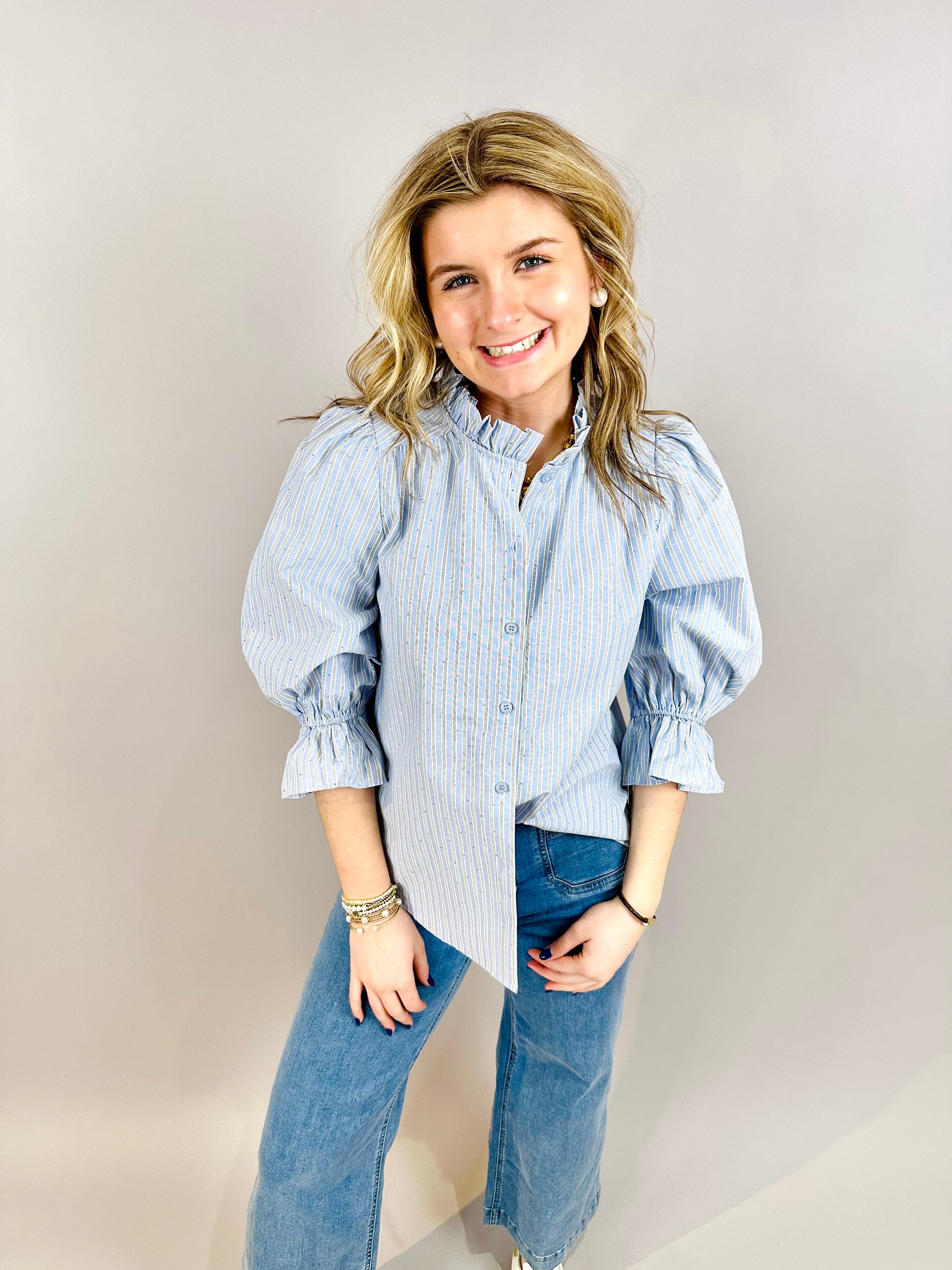 Sparkle Detail Blue Stripe Ruffle Neck Blouse