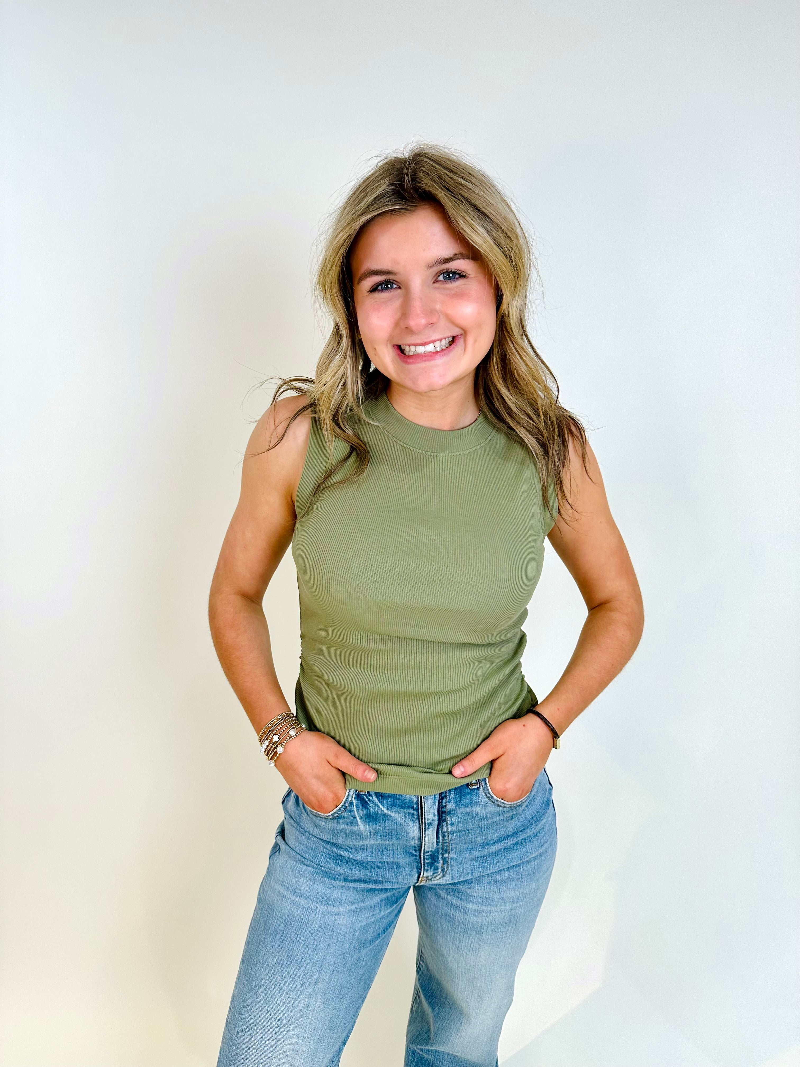 Ribbed Ruched Tank Sage