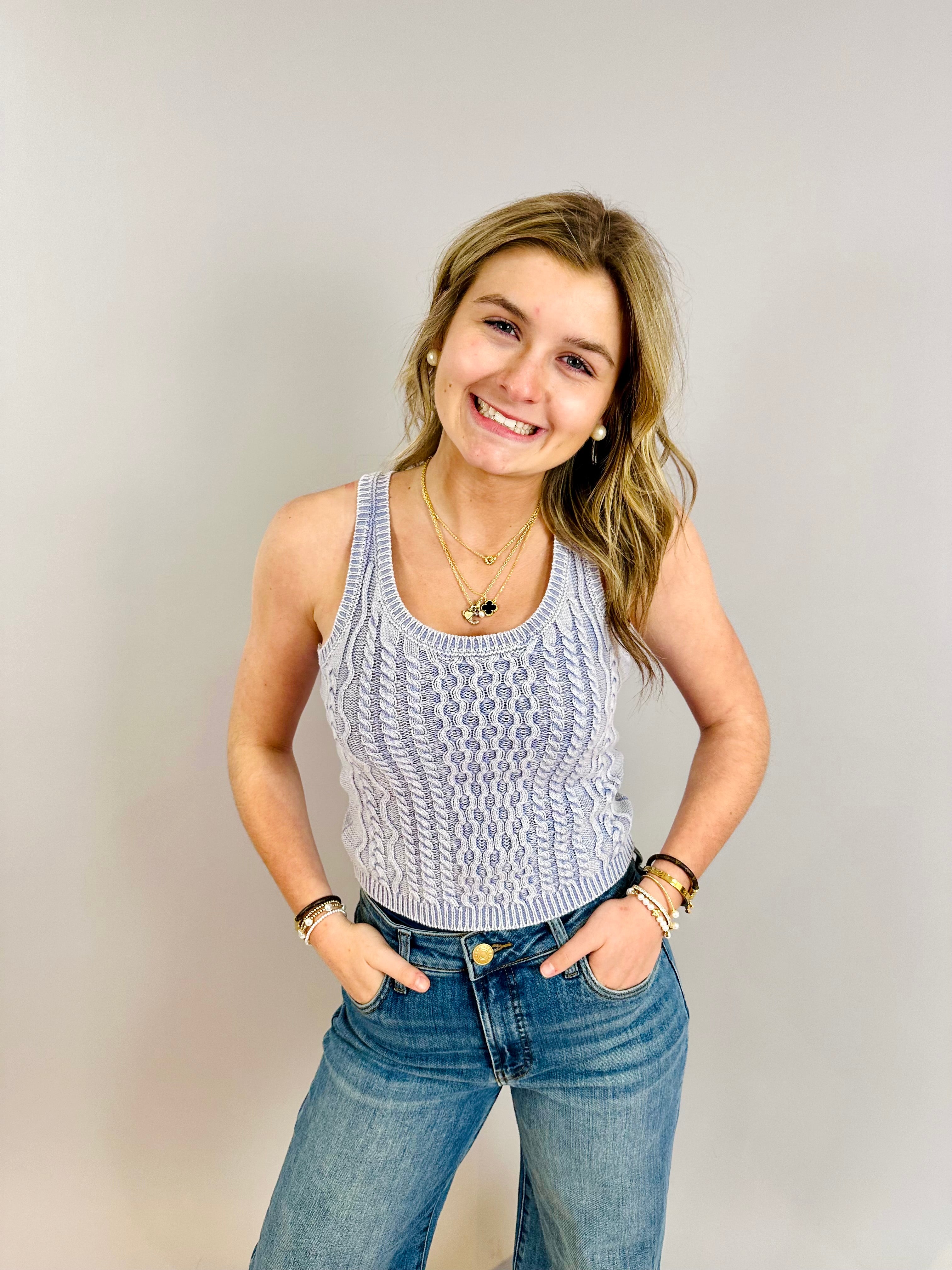 Faded Bluebell Cable Sweater Tank