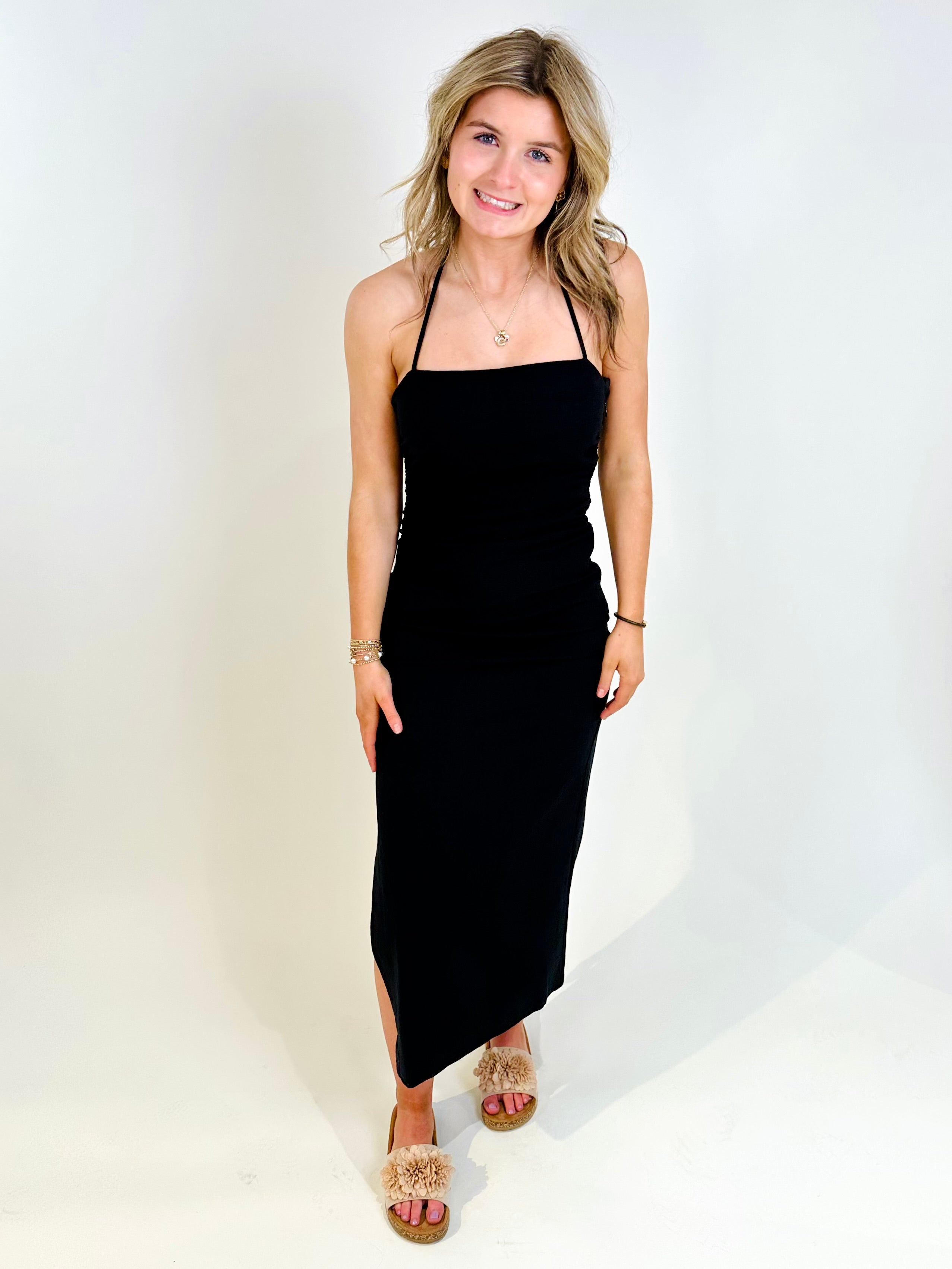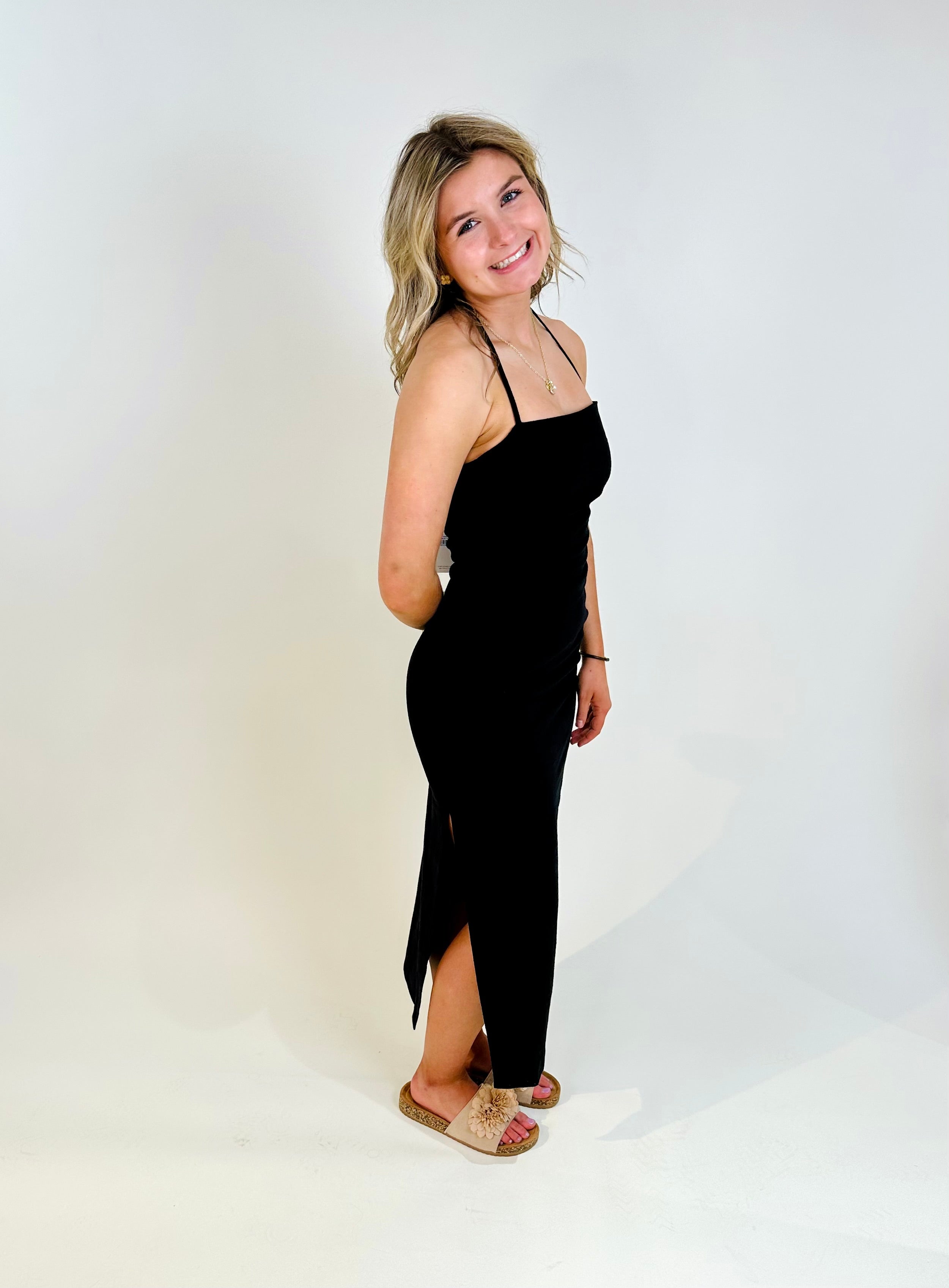 Athena Halter Dress Midi Black