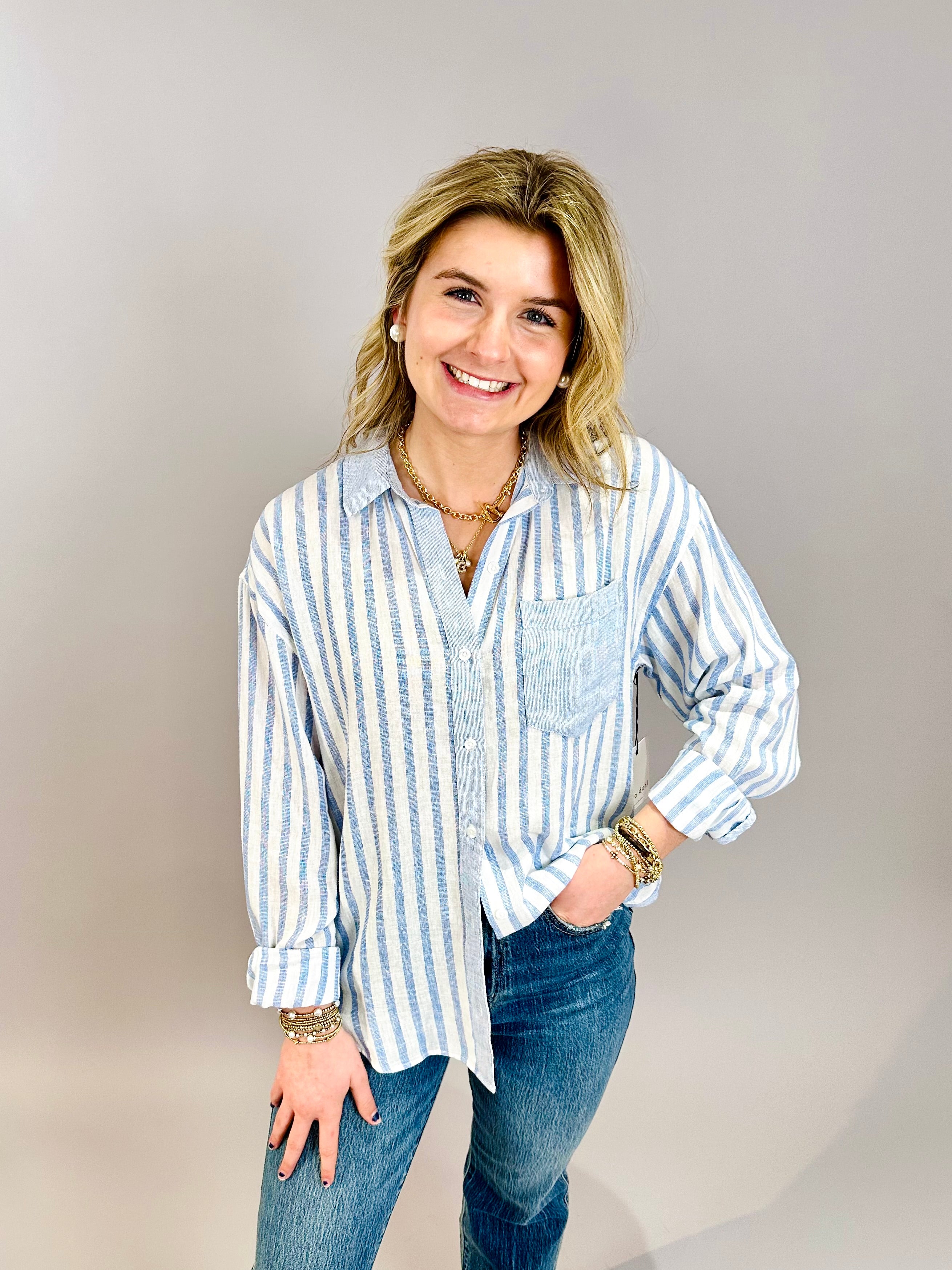 Contrast Pocket Boyfriend Shirt Blue Sky Stripe