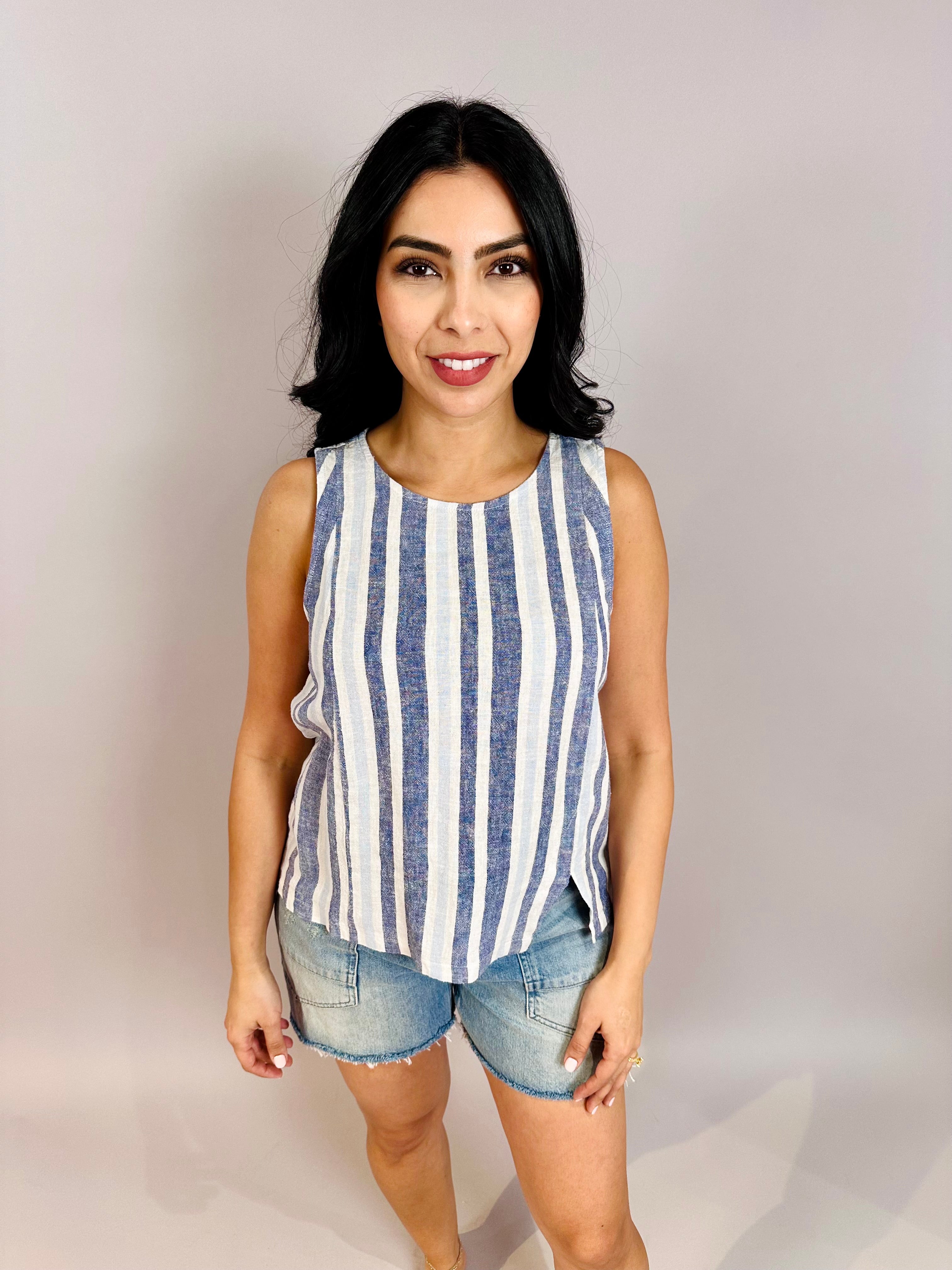 Spanx Cool Cotton Muscle Tank White/Black Stripe