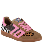Say hello to the most bold iconic sneakers of the season. Animal print always makes a statement, and Squid takes it to the next level with a patchwork of rich leathers and a distinctly girly punch featuring Back 70's signature vintage icon in bright lipstick pink. If fashion were time, this is the moment you've been waiting for.