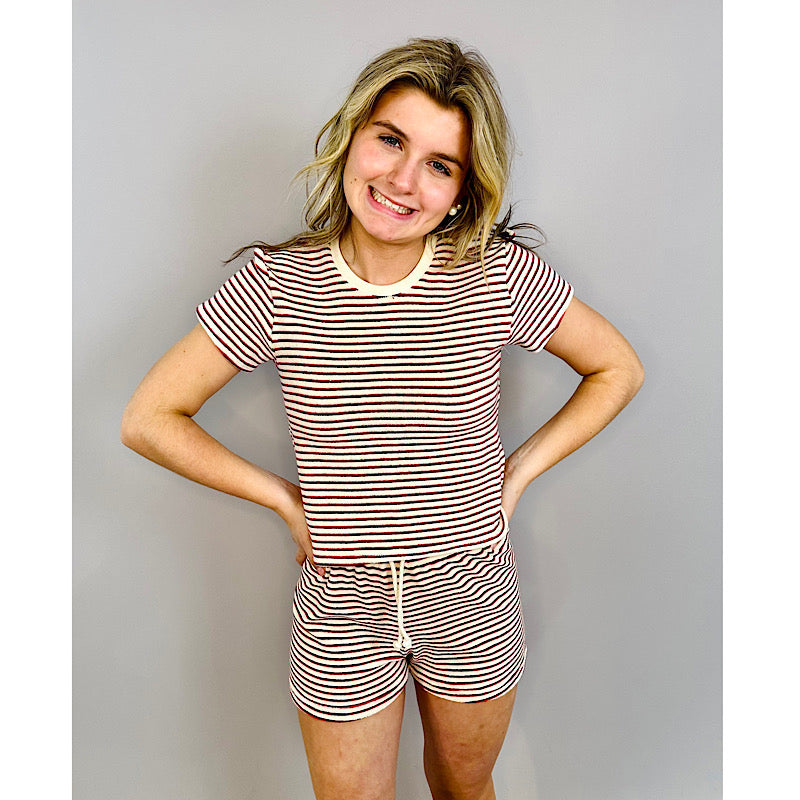 Jace Terry Sweatshort Poppy/Chocolate Stripe