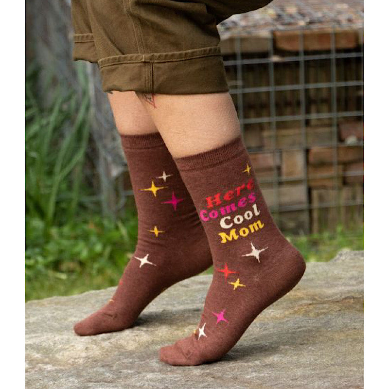 Blue Q: HERE COMES COOL MOM WOMENS CREW SOCKS